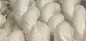 Silk bundles before weaved into a silk fabric.