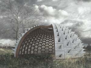 The pavillion in NY is a wooden structure supporting 300 cast concrete panels, where 5,000 solitary bees can make their home in nesting tubes in the panels. And there is limited research on solitary bee habitats and nesting behavior, so Ductal put advanced camera technology put in place to monitor how the bees act and live in it over time. The project was awarded third place at the New York City Media Lab Tech Expo of 2018.