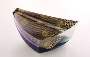 Akane Yamamoto has achieved to set three-dimensional gold kirikane ornaments as if they were floating in between the glass layers which fully like they were fused together, a kirikane glass technique that many glassmakers experts has been trying to achieve for many decades.