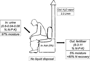 He continued, “Our aim was to investigate whether fresh urine (pH < 7) added to five different alkaline media (pH > 11) could be dehydrated at elevated temperatures (50 and 60 °C) with minimal loss of urea, urine’s principal nitrogen compound. We found that it was possible to concentrate urine 48 times, yielding dry end-products with high fertiliser value: approximately, 10% N, 1% P, and 4% K.”